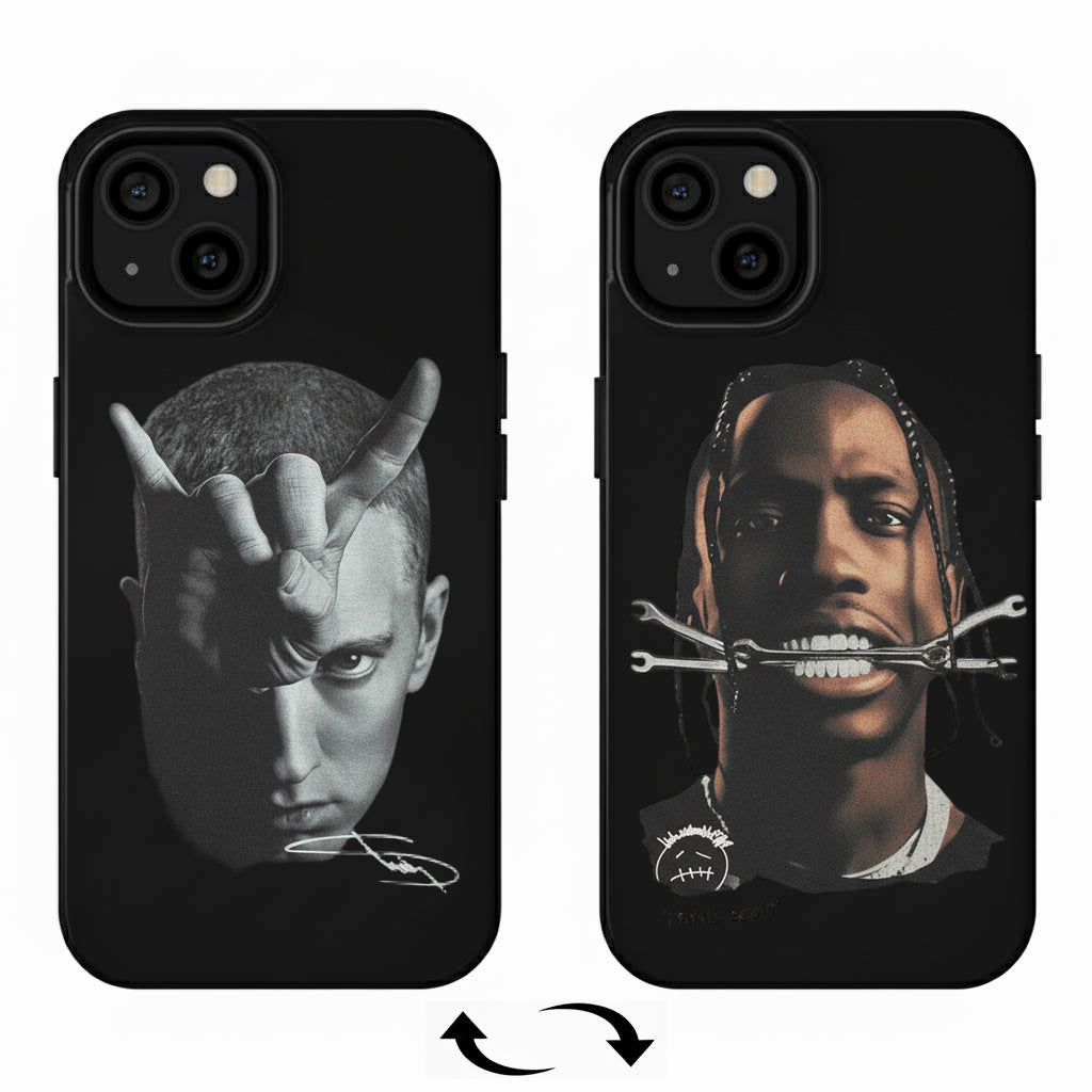 3D Lenticular Phone Case (Magsafe Supported) — Dynamic Eminem & Travis Scott Double Design (Changes With Angle)