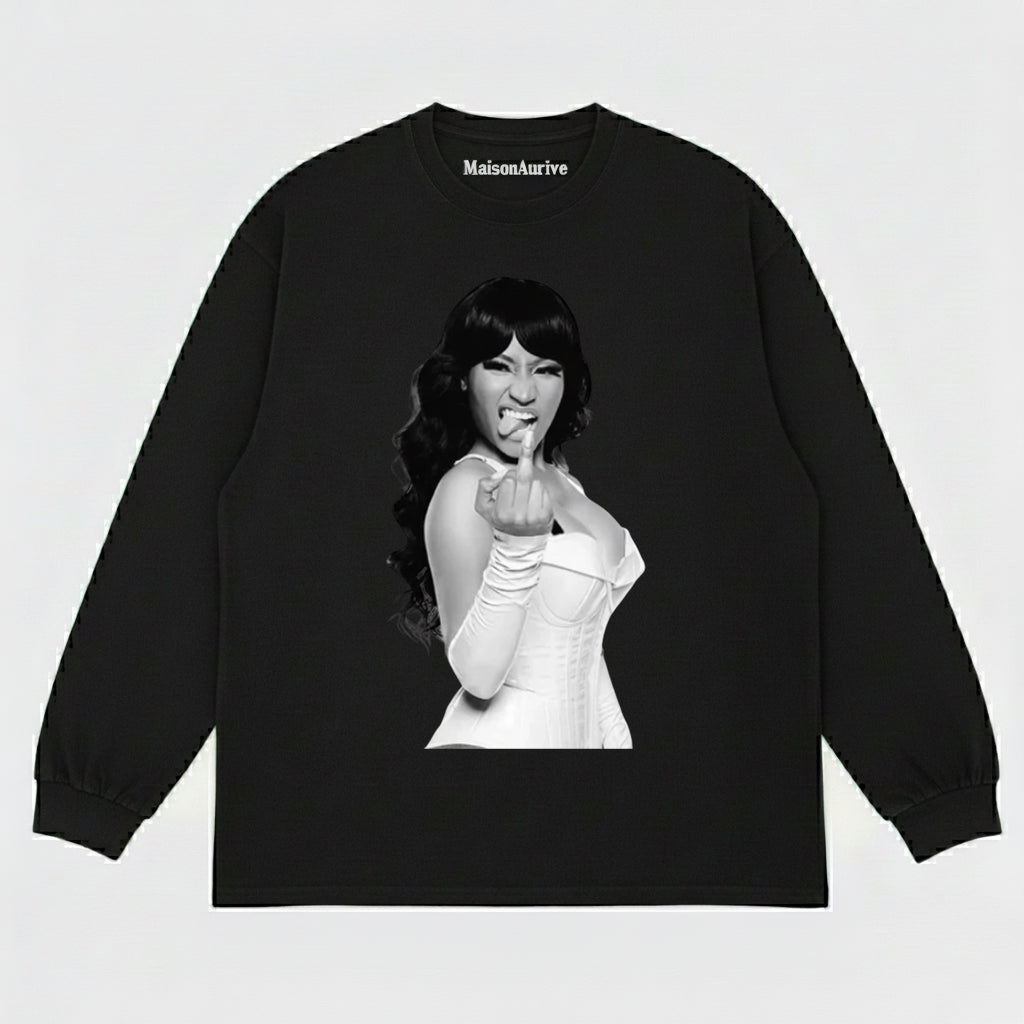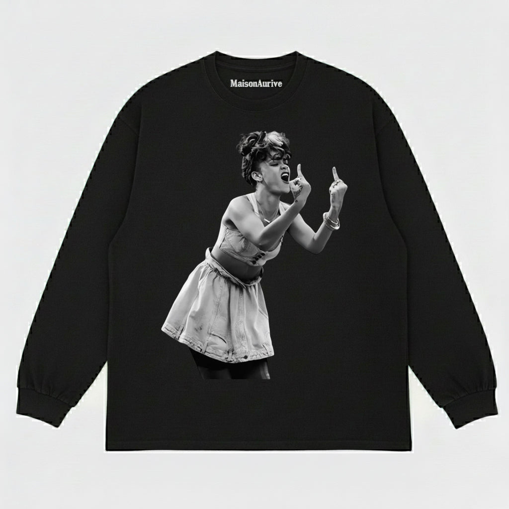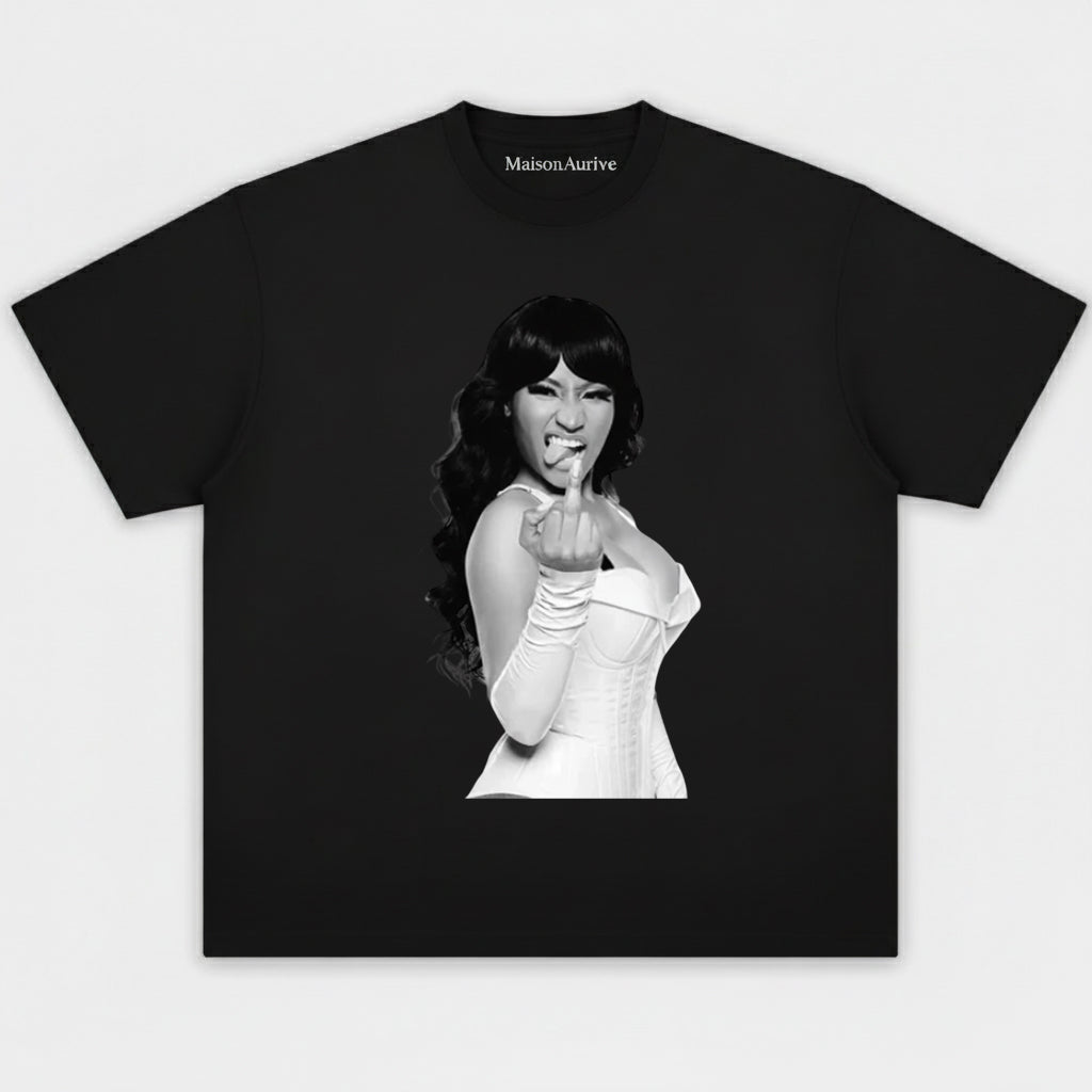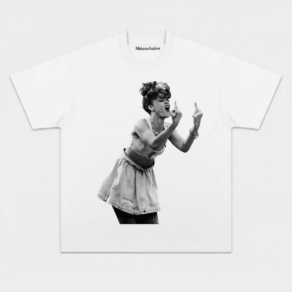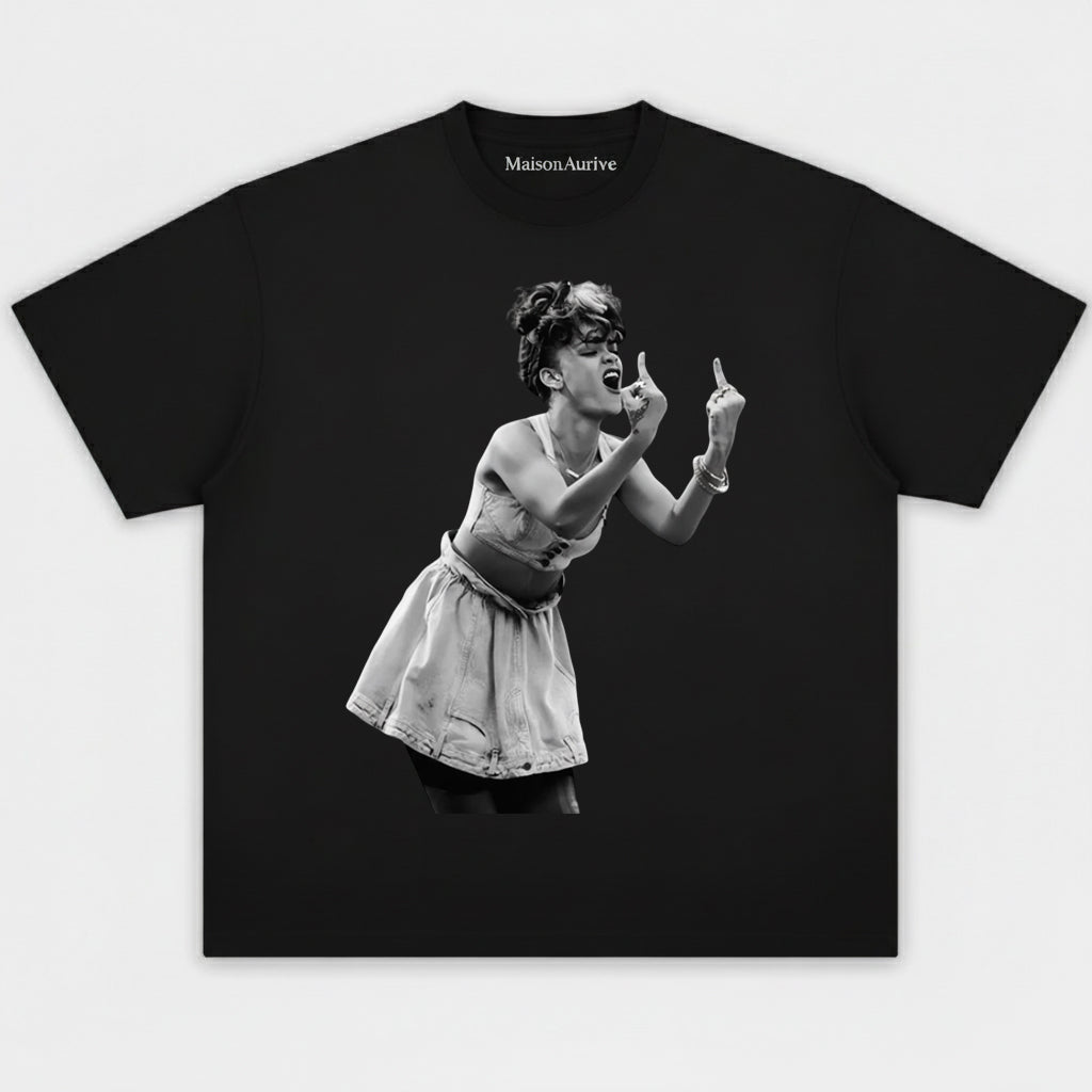 MaisonAurive Washed Hip-Hop Tee – Skirt Baddie Dual Gesture Portrait Waterwashed Charcoal