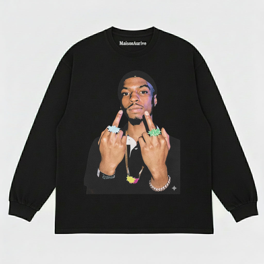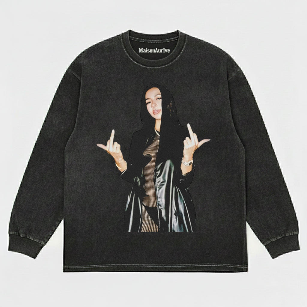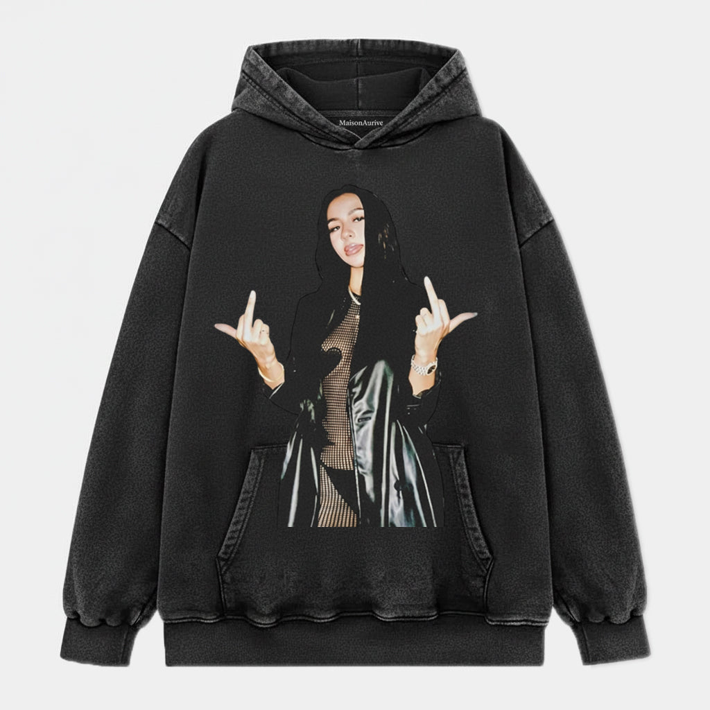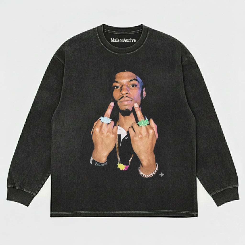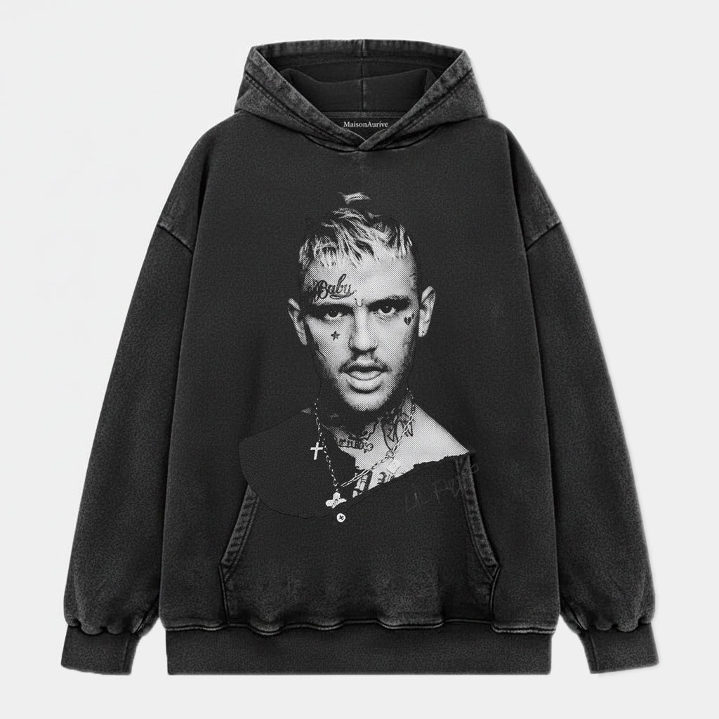 MaisonAurive Vintage Washed Tee: Sweet-HipHop Portrait Print Charcoal