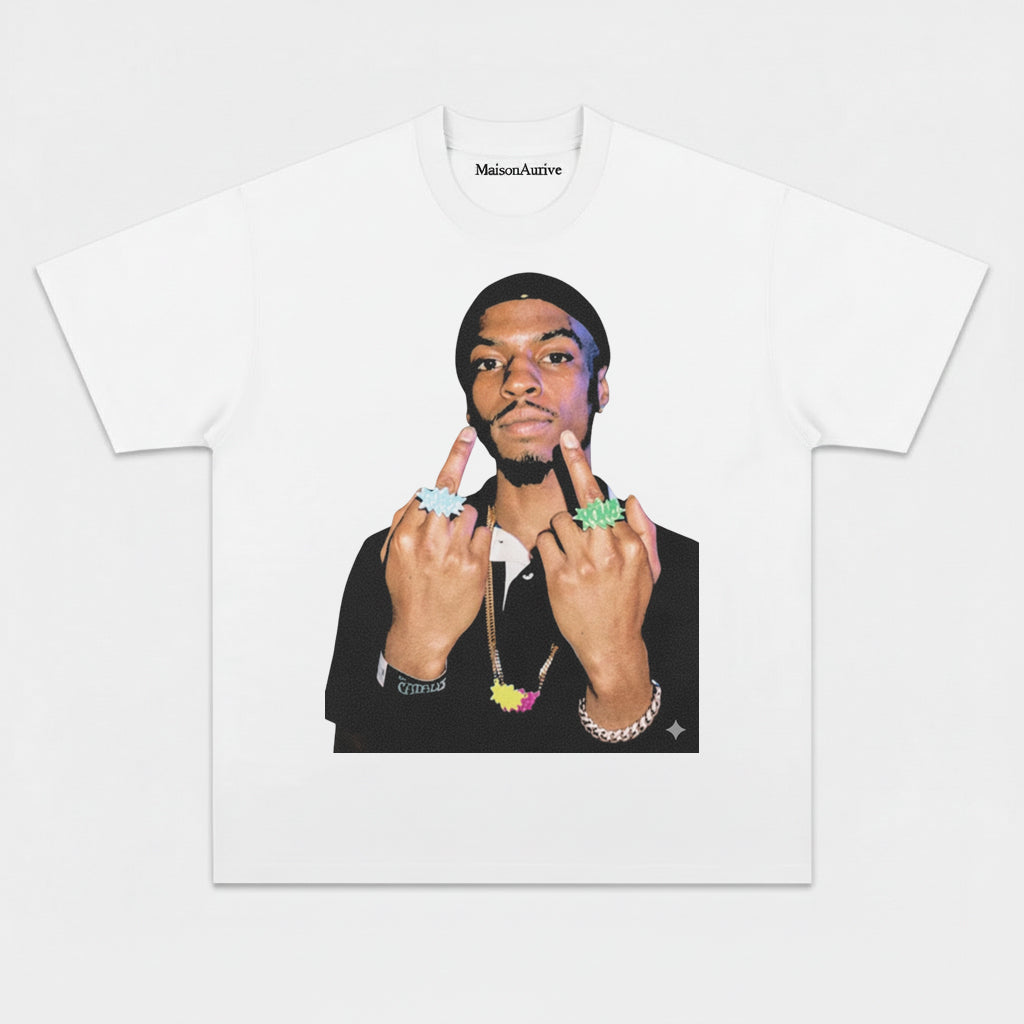 MaisonAurive Washed Hip-Hop Tee – Cash Portrait Print Charcoal