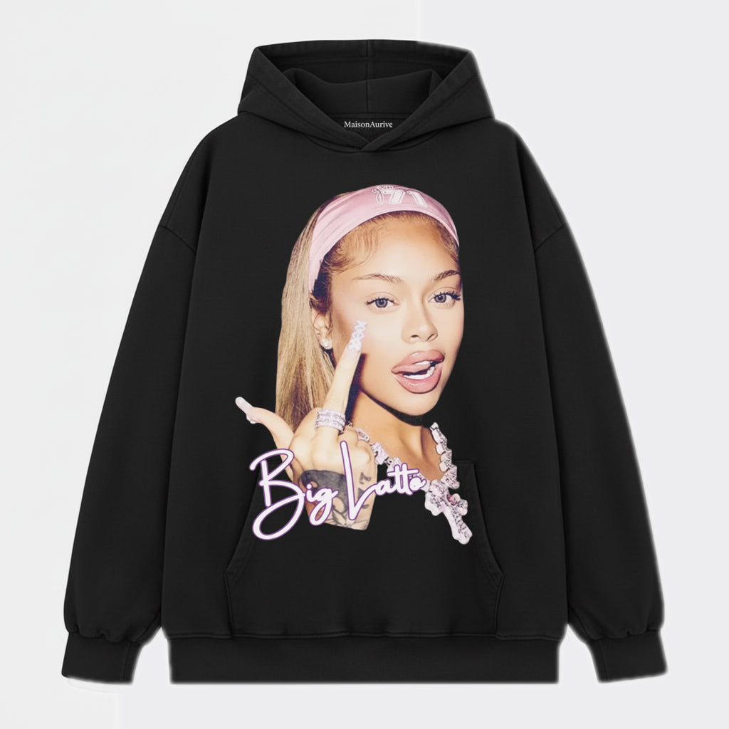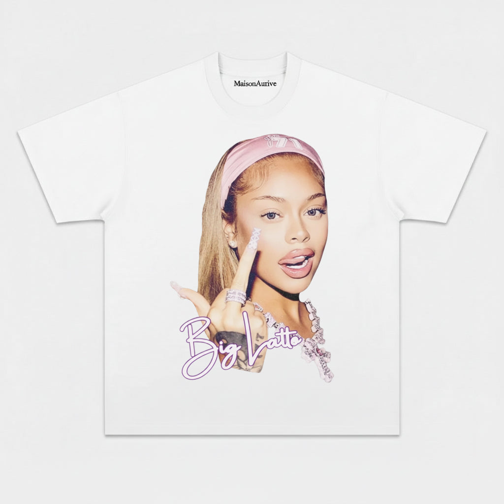 MaisonAurive Vintage Washed Tee: Sweet-HipHop “Big Latte” Print Charcoal