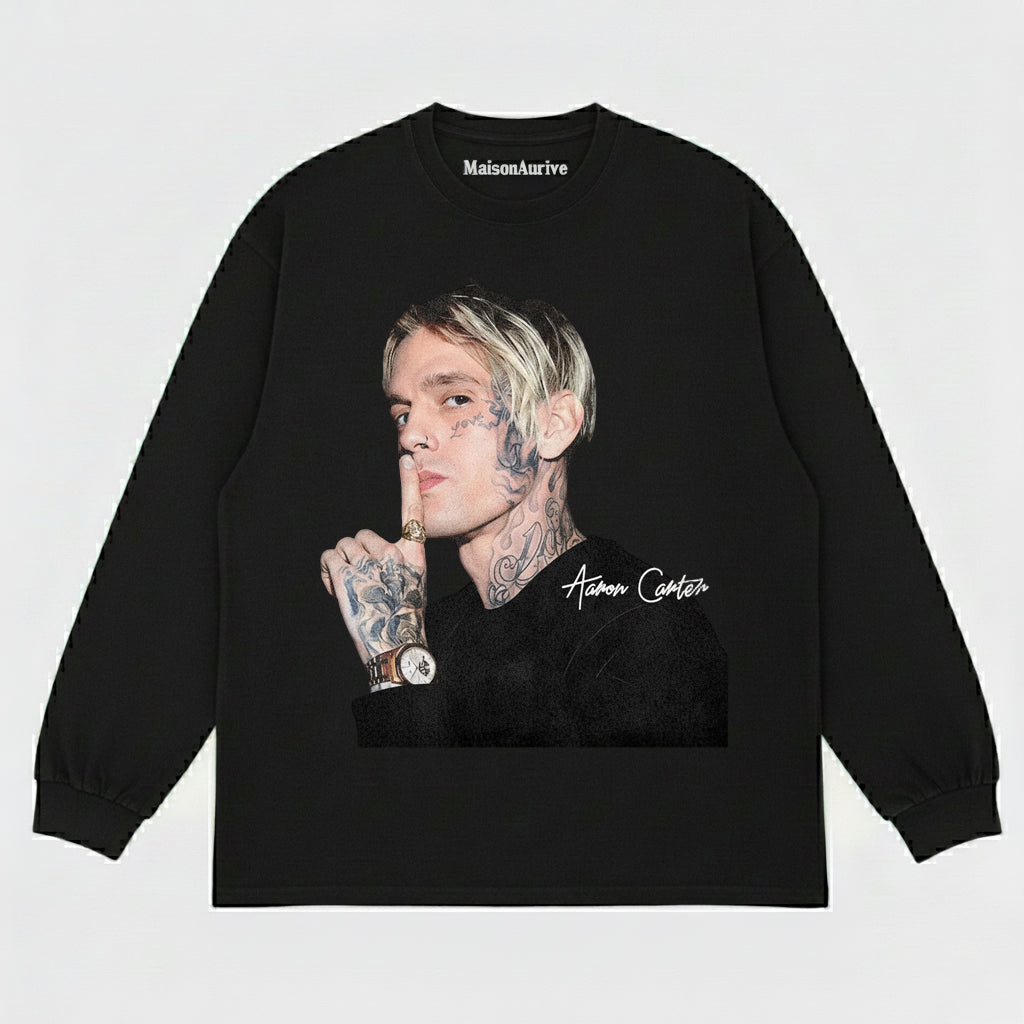 MaisonAurive Washed Edgy Tee – Aaron Carter Portrait Charcoal