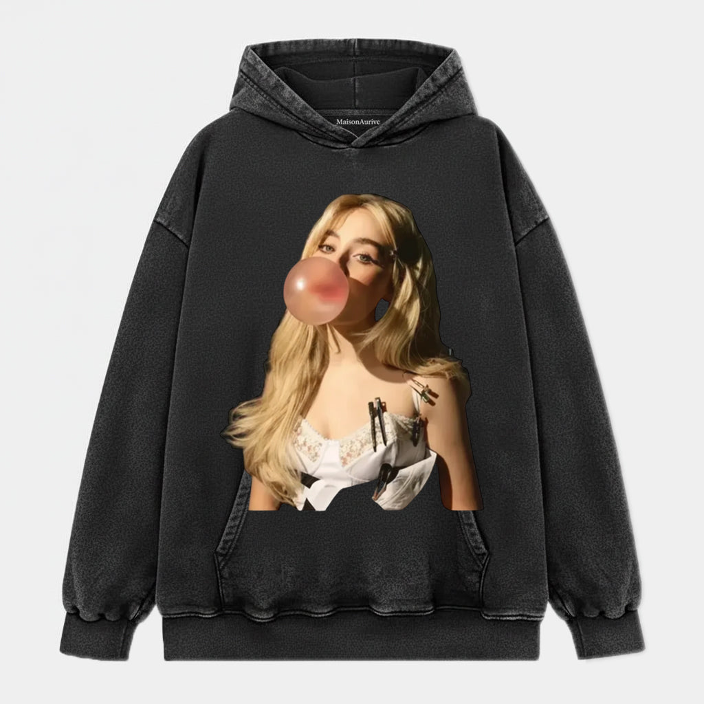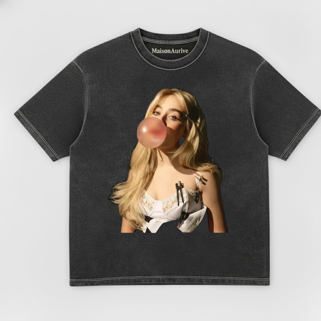 MaisonAurive Washed Tee - Bubblegum Babe Print Charcoal