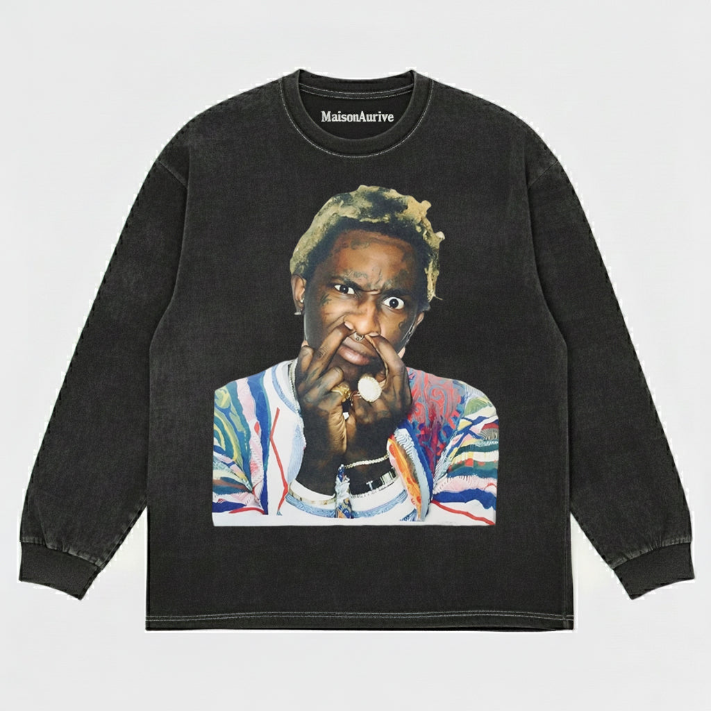 טי גרפי של MaisonAurive Washed Hip Hop Icon - בהשראת בריון צעיר