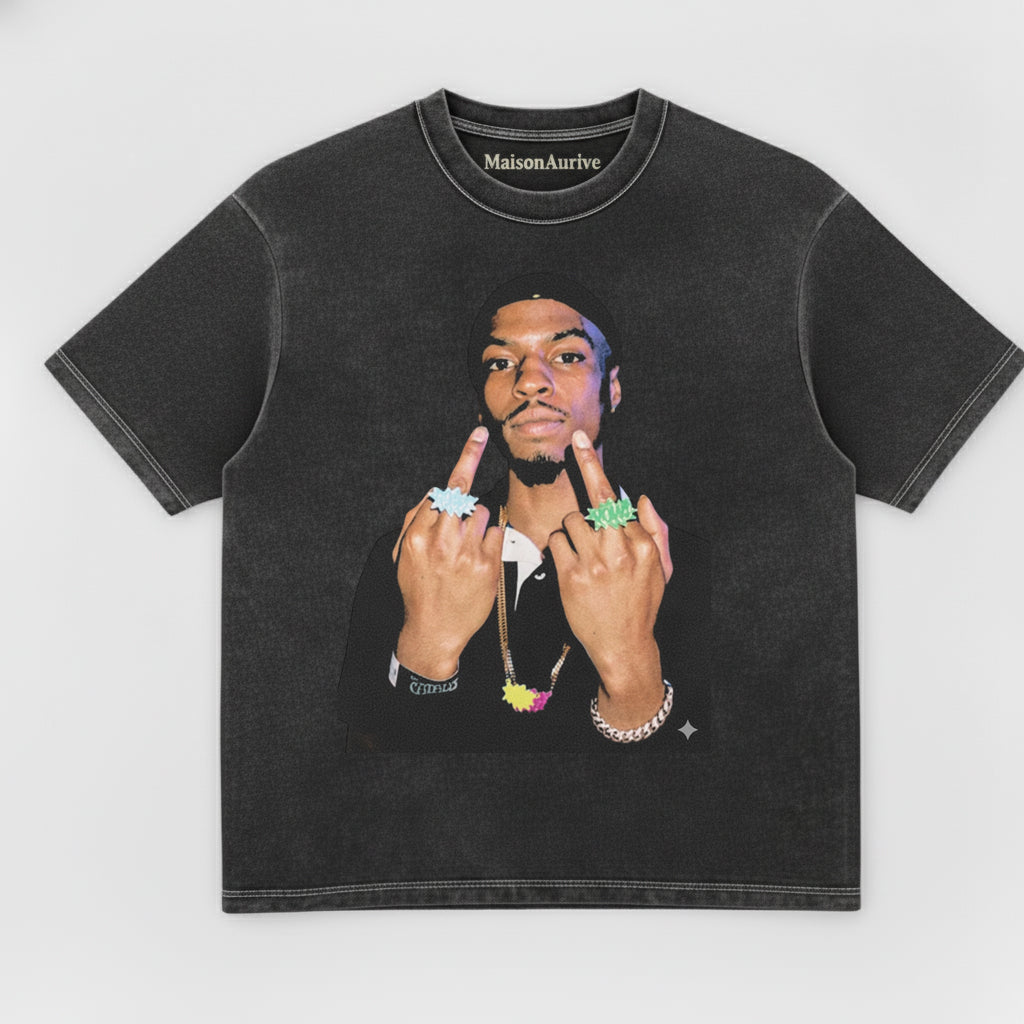 मैसनऑरिव वॉश्ड हिप-हॉप टी - वाइब्रेंट एक्सेसरी पोर्ट्रेट चारकोल