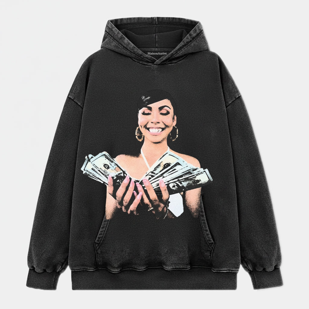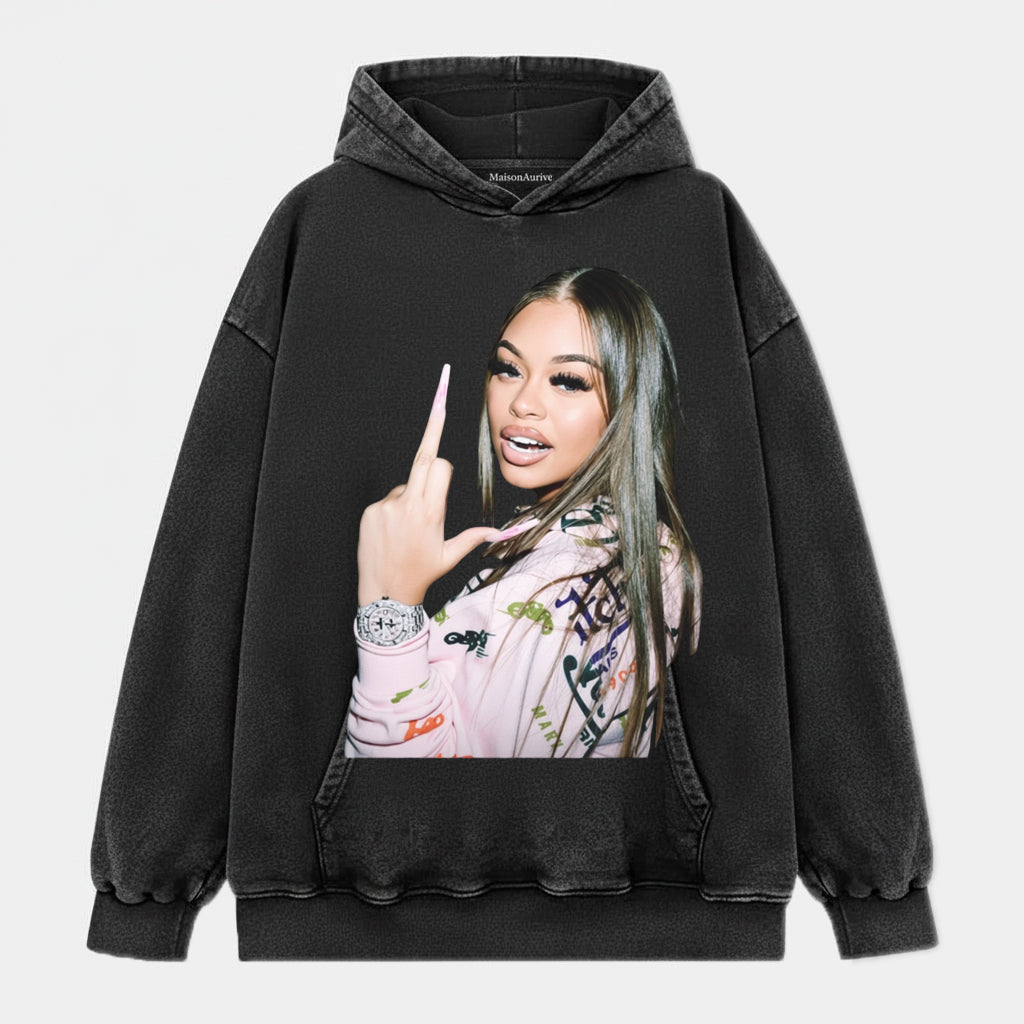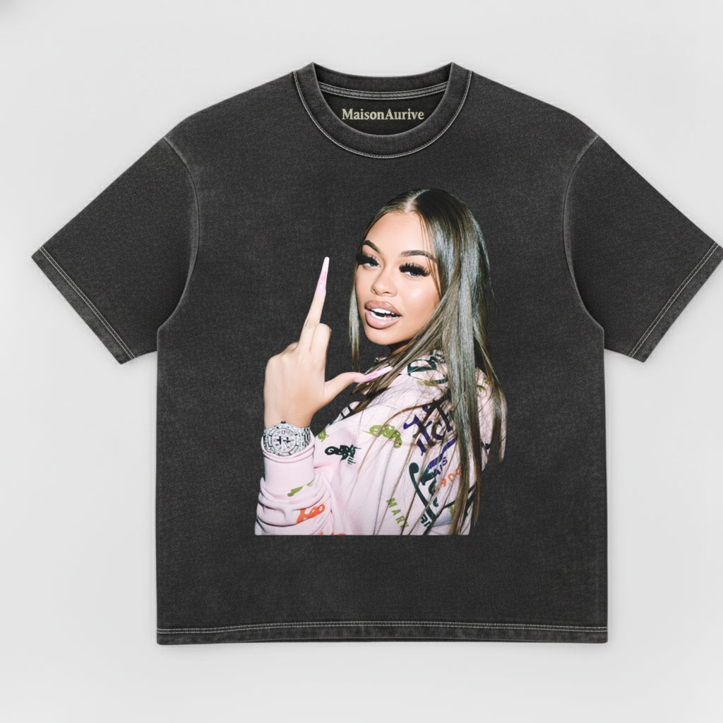 MaisonAurive वॉश्ड हिप-हॉप टी-शर्ट – चेन & वाटरवॉश्ड चारकोल रंग के पोर्ट्रेट वाले धूप के चश्मे