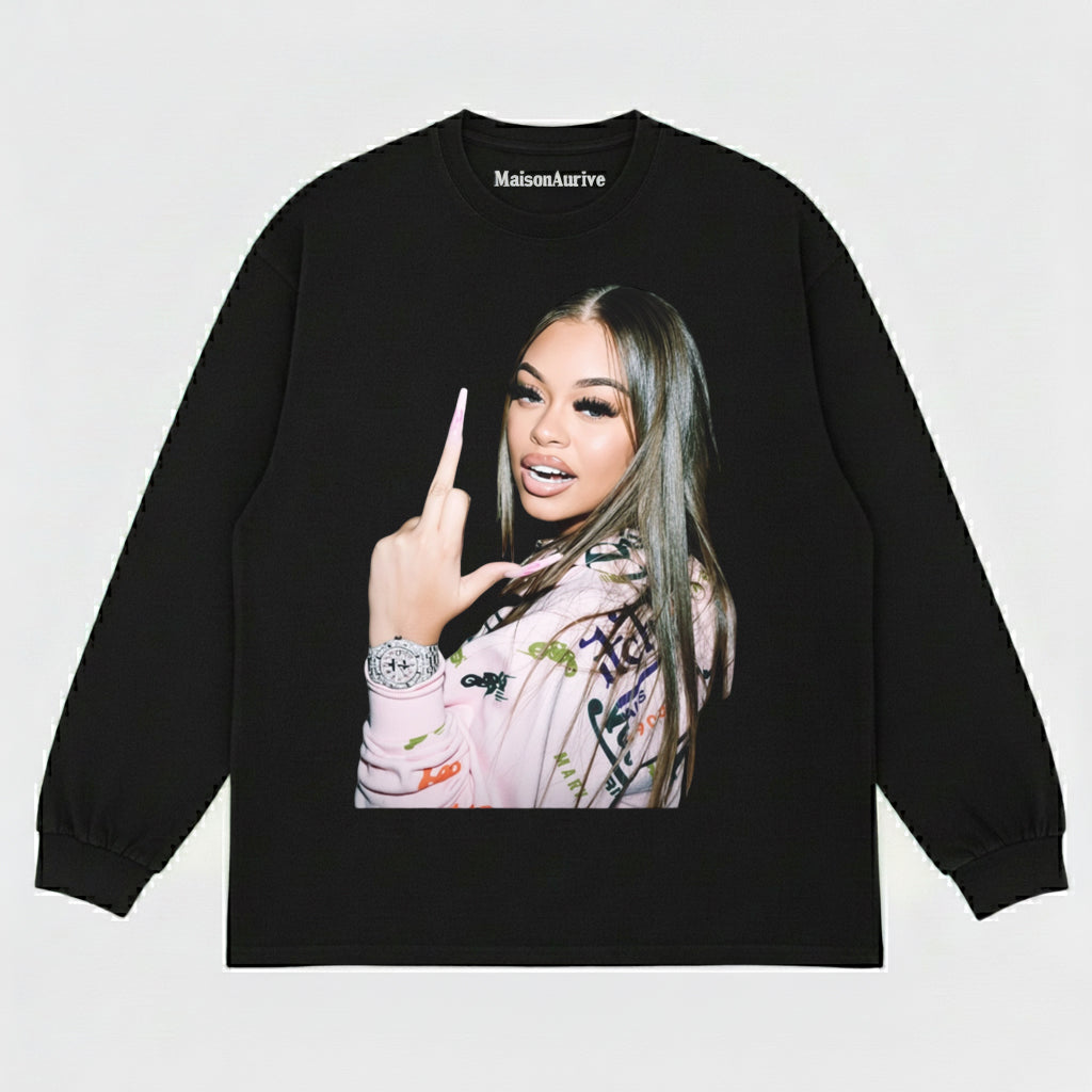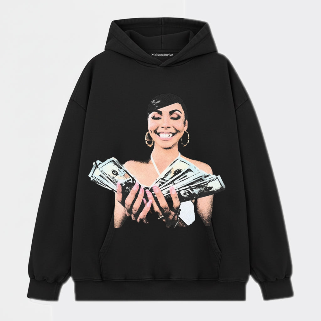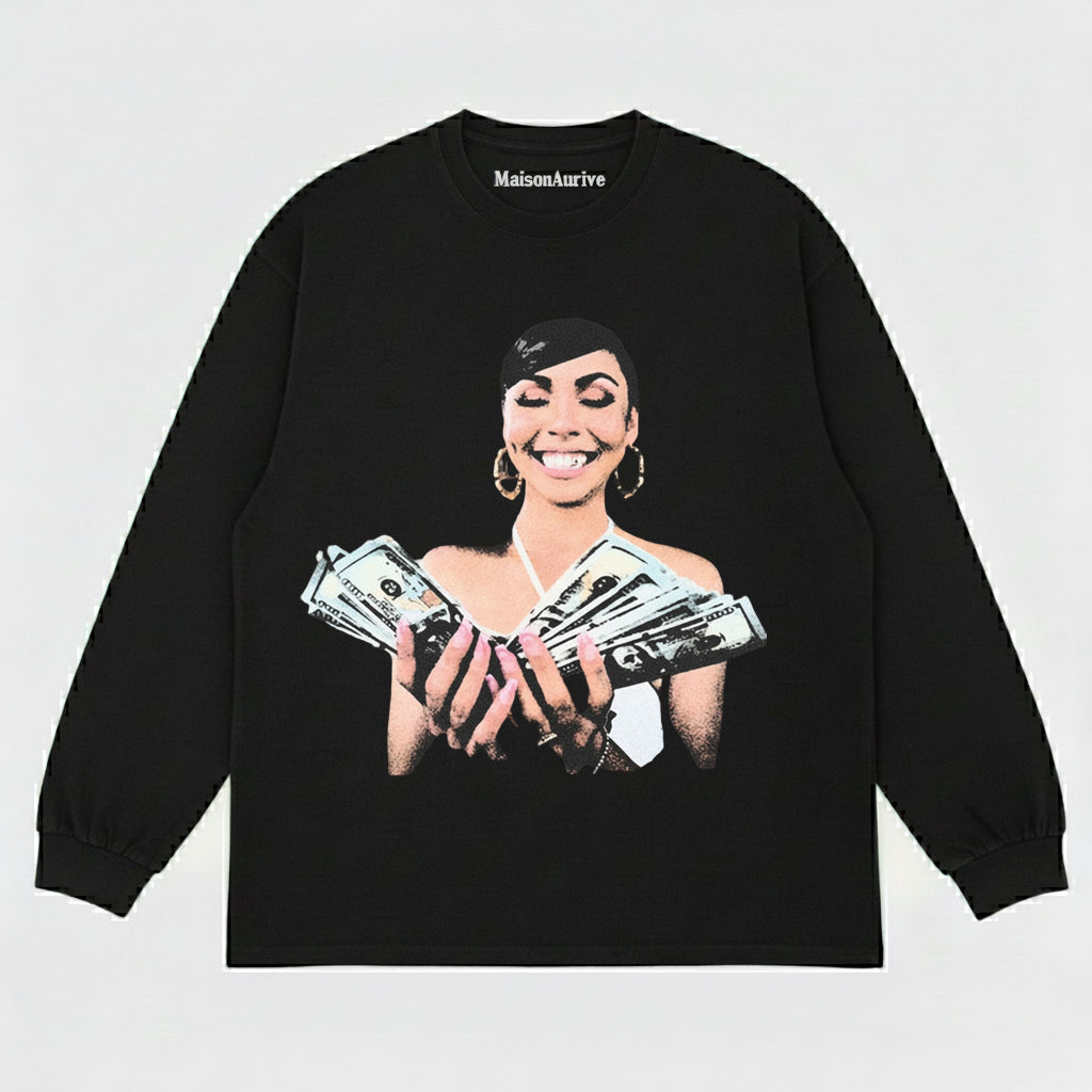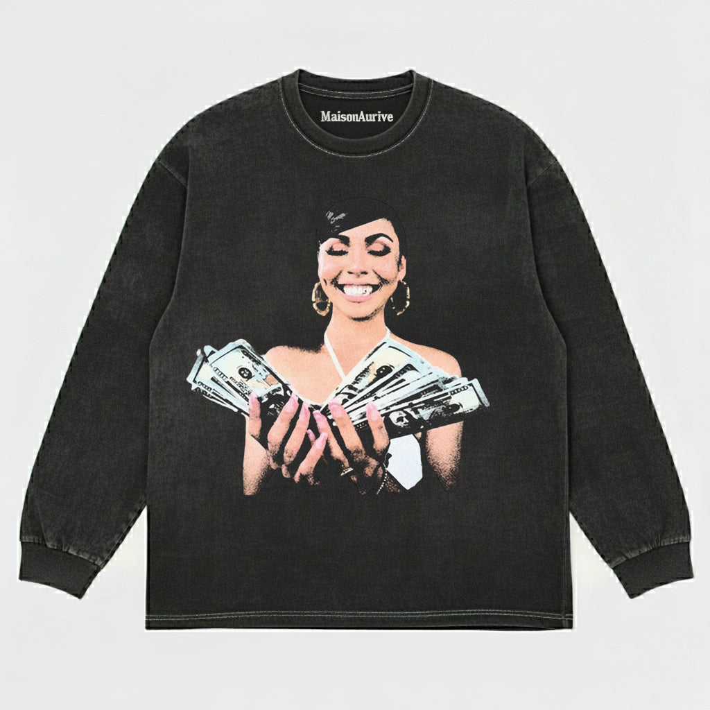 MaisonAurive वॉश्ड हिप-हॉप टी-शर्ट – चेन & वाटरवॉश्ड चारकोल रंग के पोर्ट्रेट वाले धूप के चश्मे