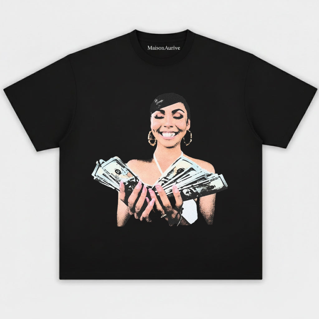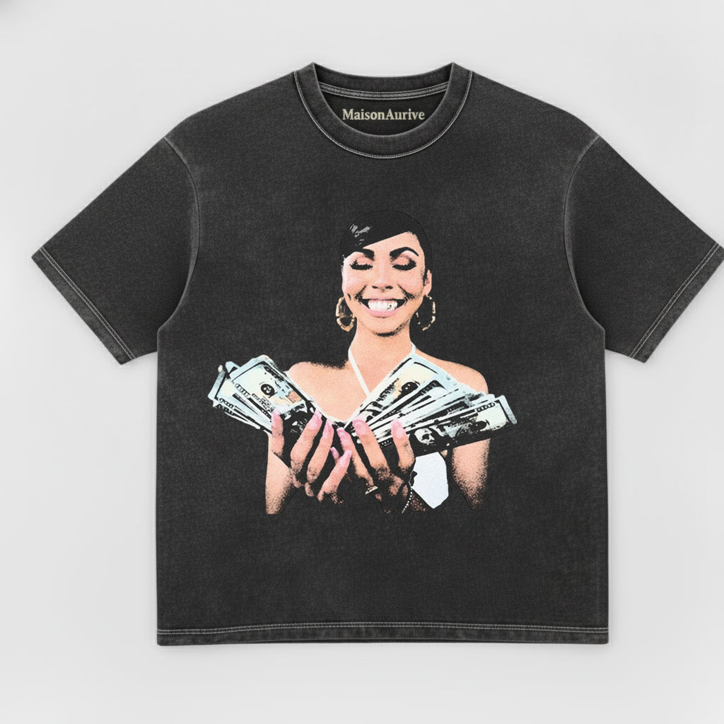 मैसनऑरिव वॉश्ड हिप-हॉप टी - कैश पोर्ट्रेट प्रिंट चारकोल