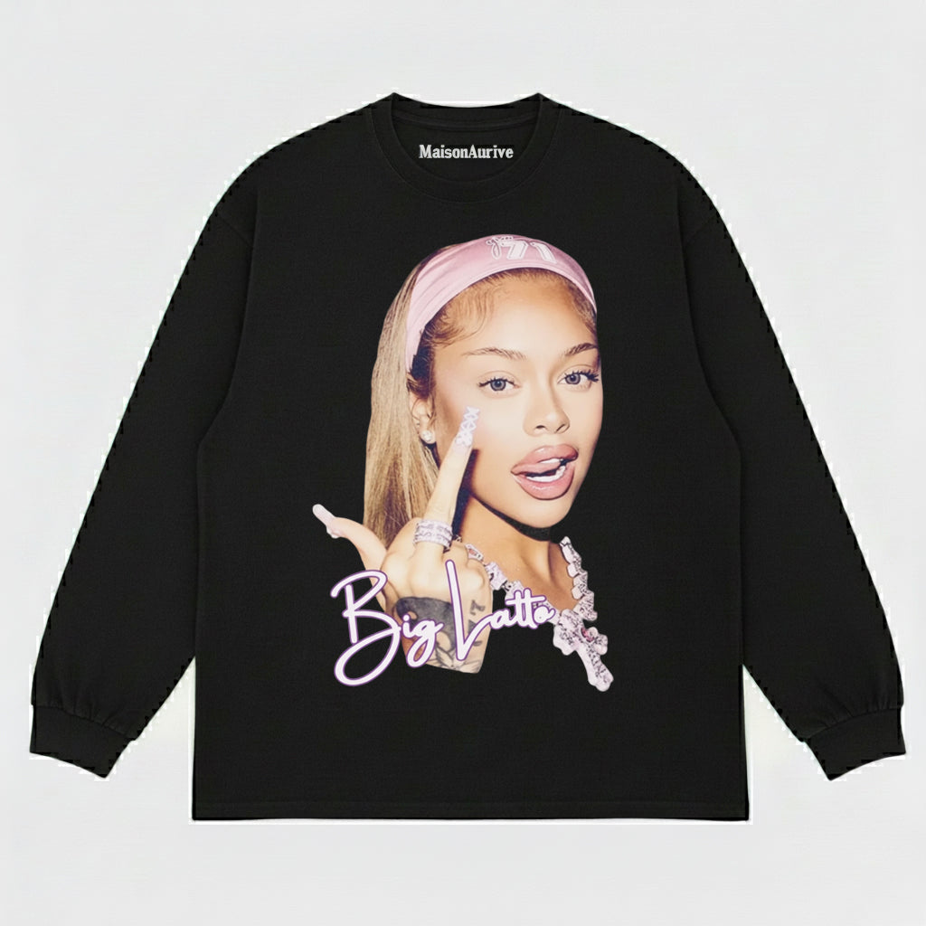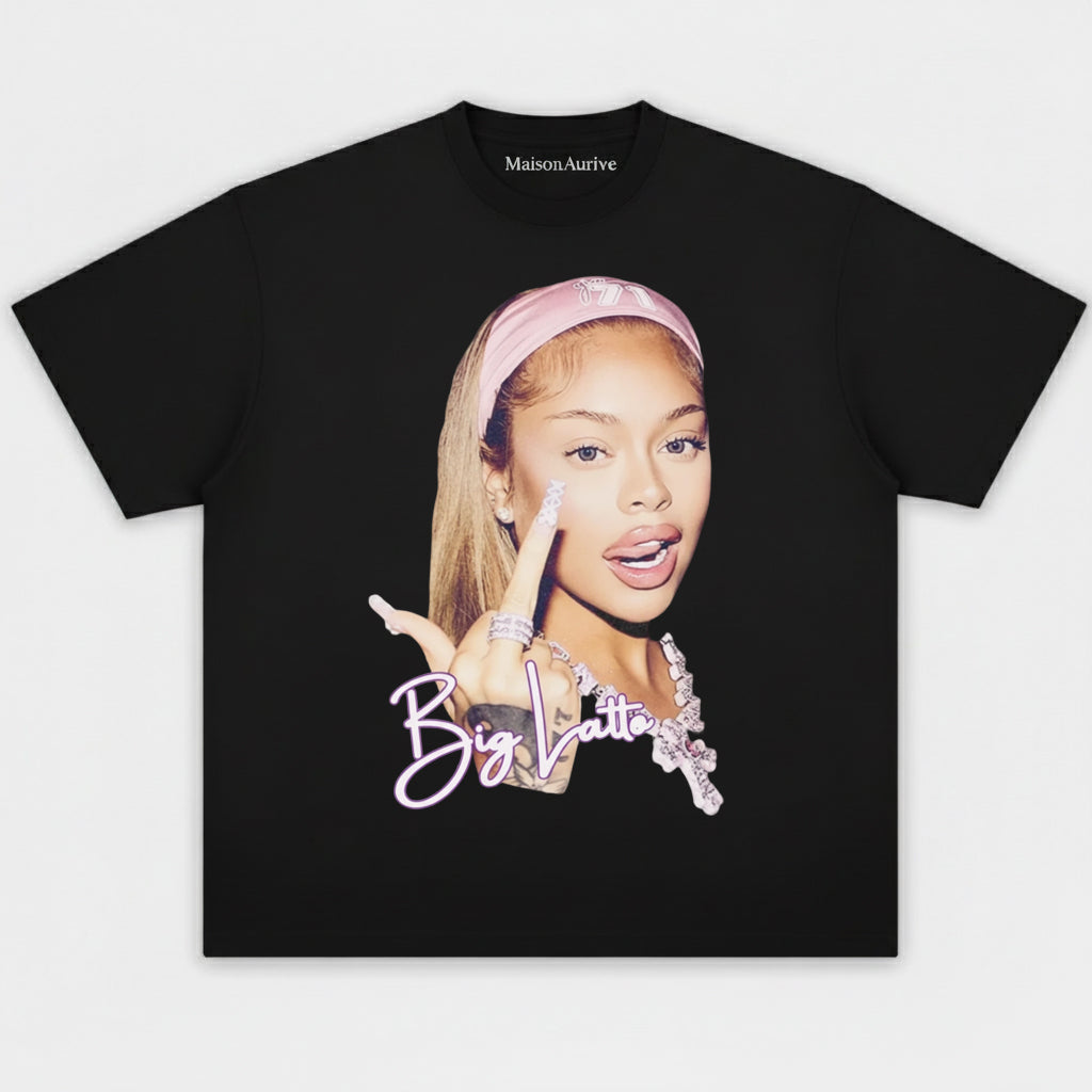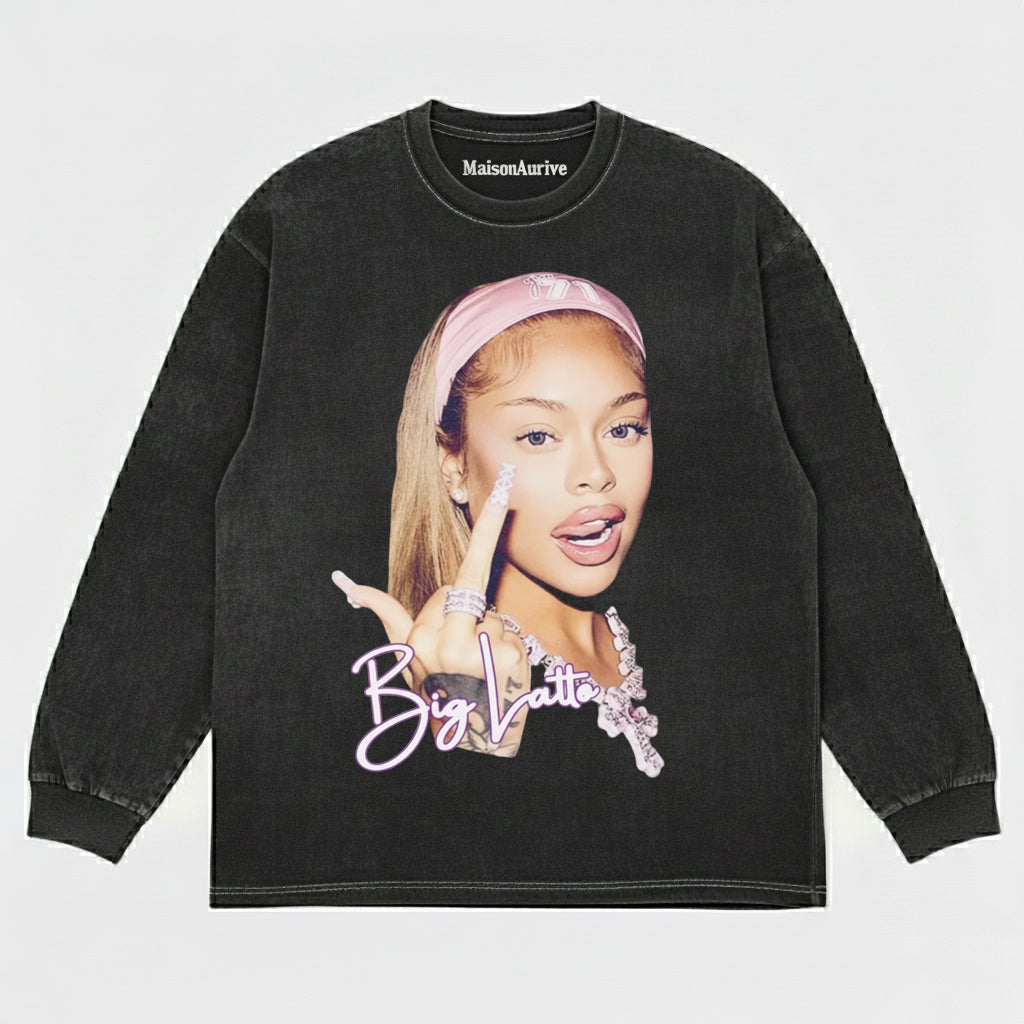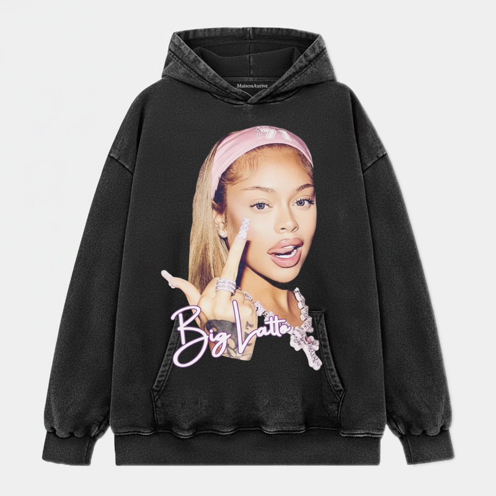 मैसनऑरिव विंटेज वॉश्ड टी: स्वीट-हिपहॉप "बिग लट्टे" प्रिंट चारकोल