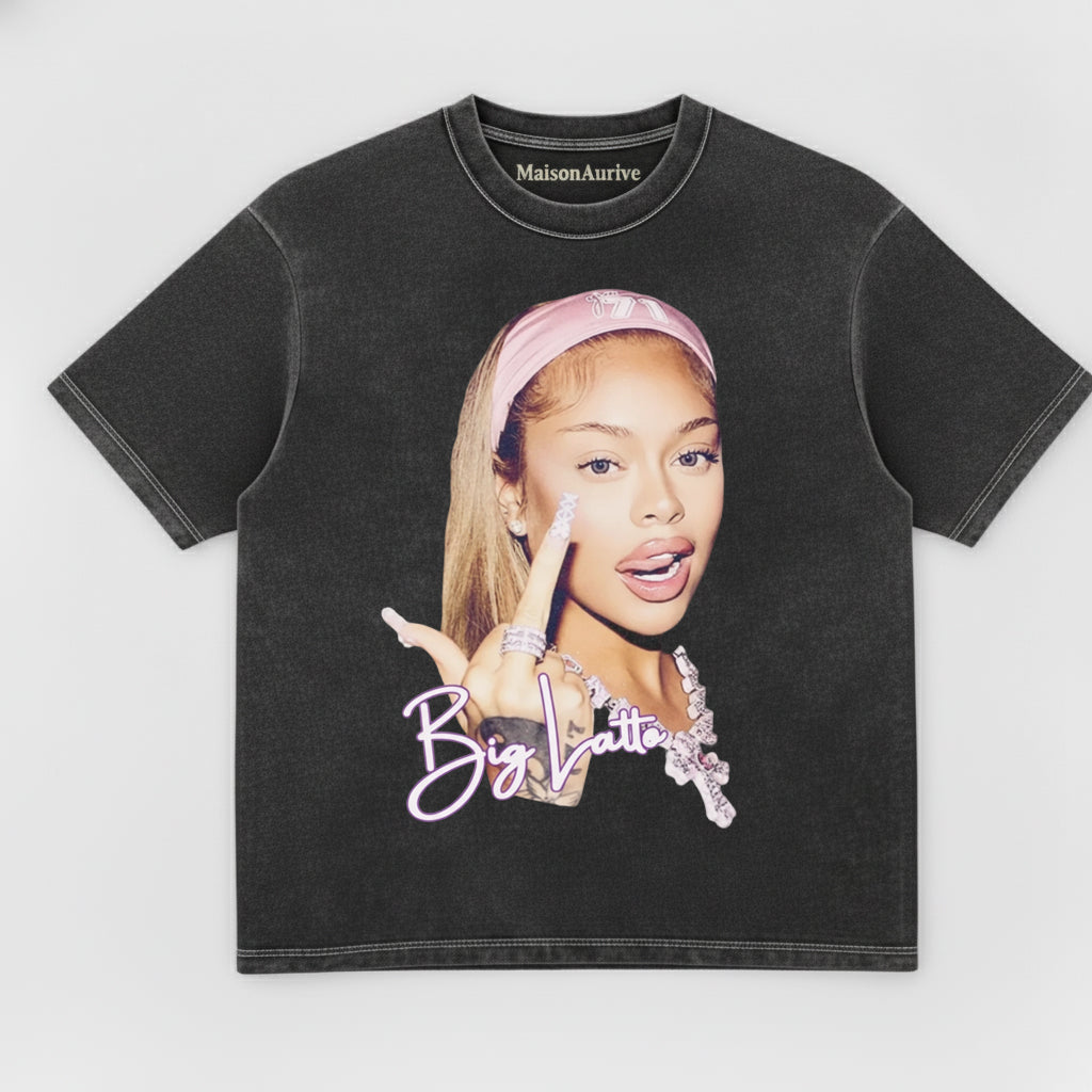 मैसनऑरिव विंटेज वॉश्ड टी: स्वीट-हिपहॉप "बिग लट्टे" प्रिंट चारकोल