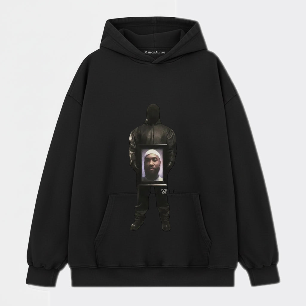 मैसनऑरिव वॉश्ड डार्क वाइब टी - ब्लैक | वाटरवॉश ग्रे - हुडेड पोर्ट्रेट ग्राफिक टीईई