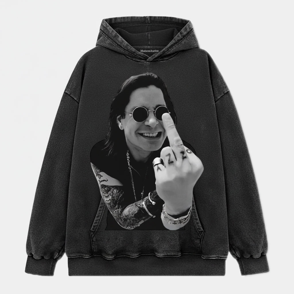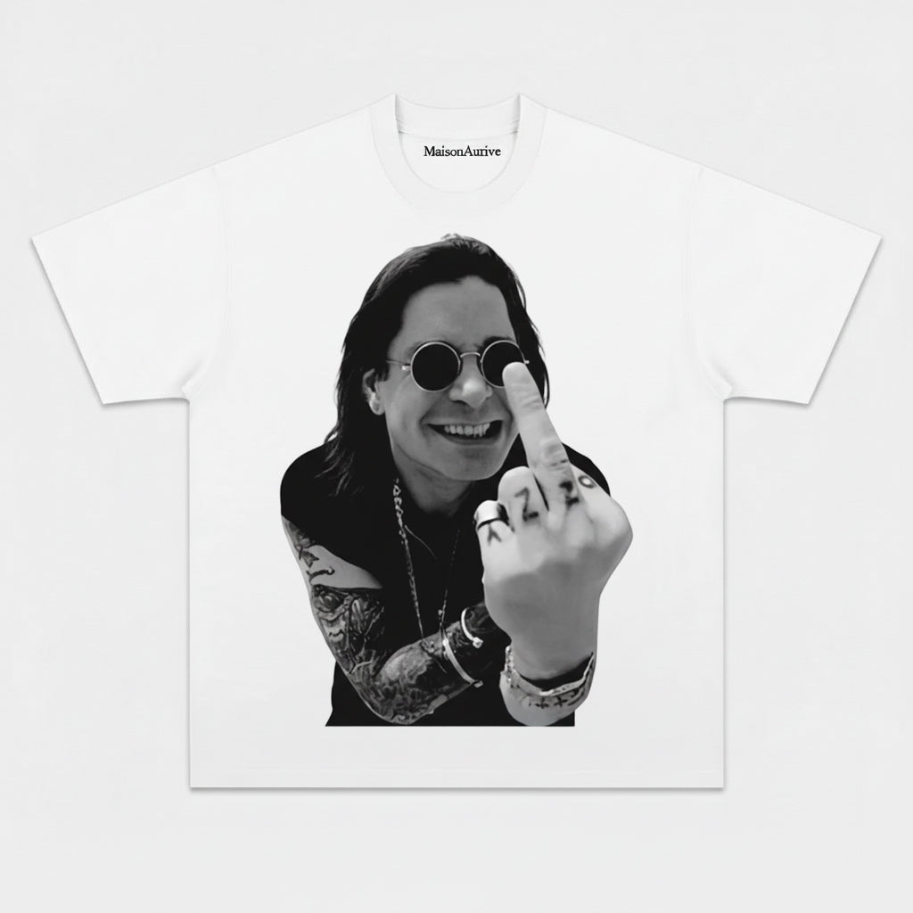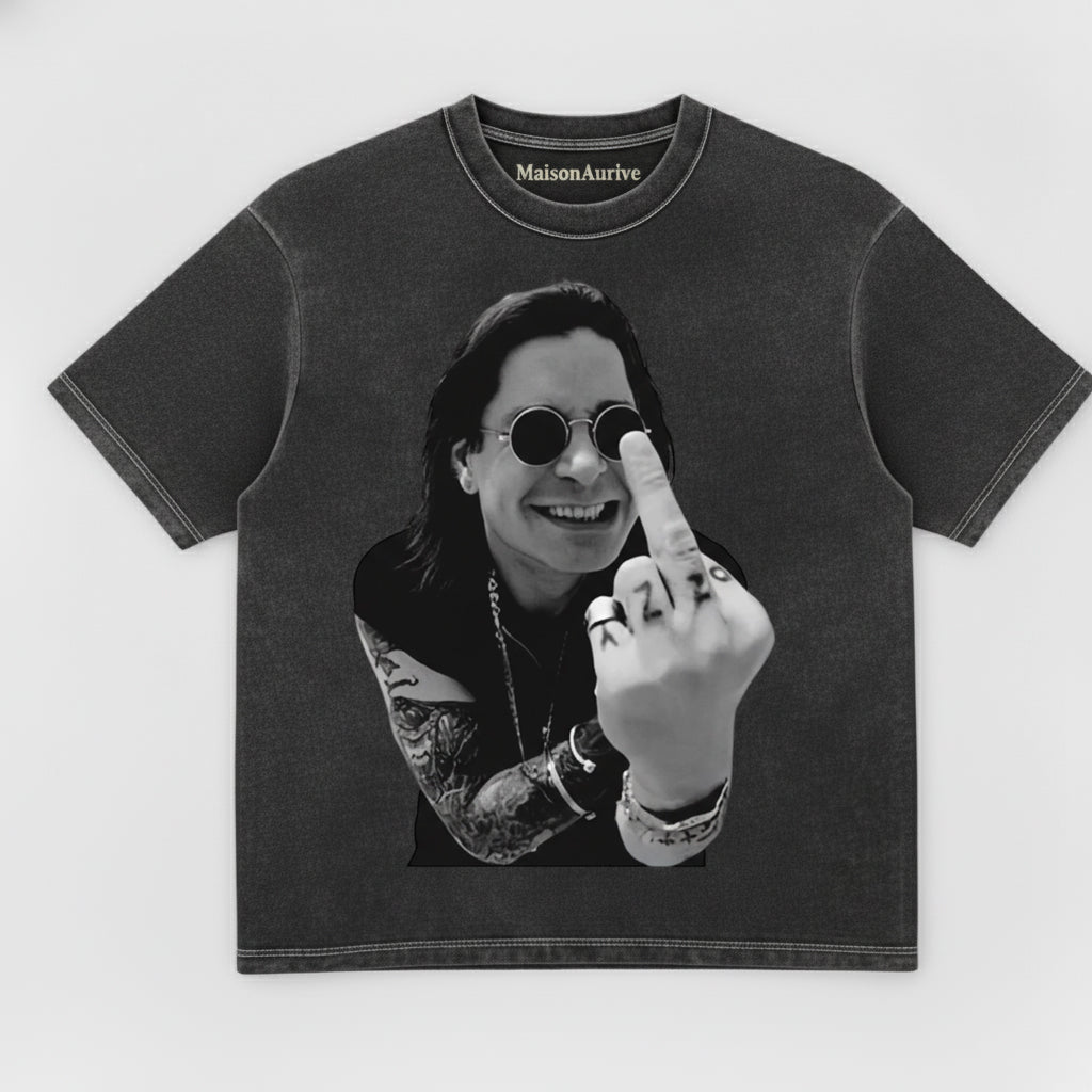 MaisonAurive ウォッシュド ブラック T シャツ – タトゥージェスチャーの象徴的なグラフィック
