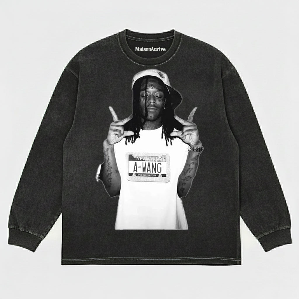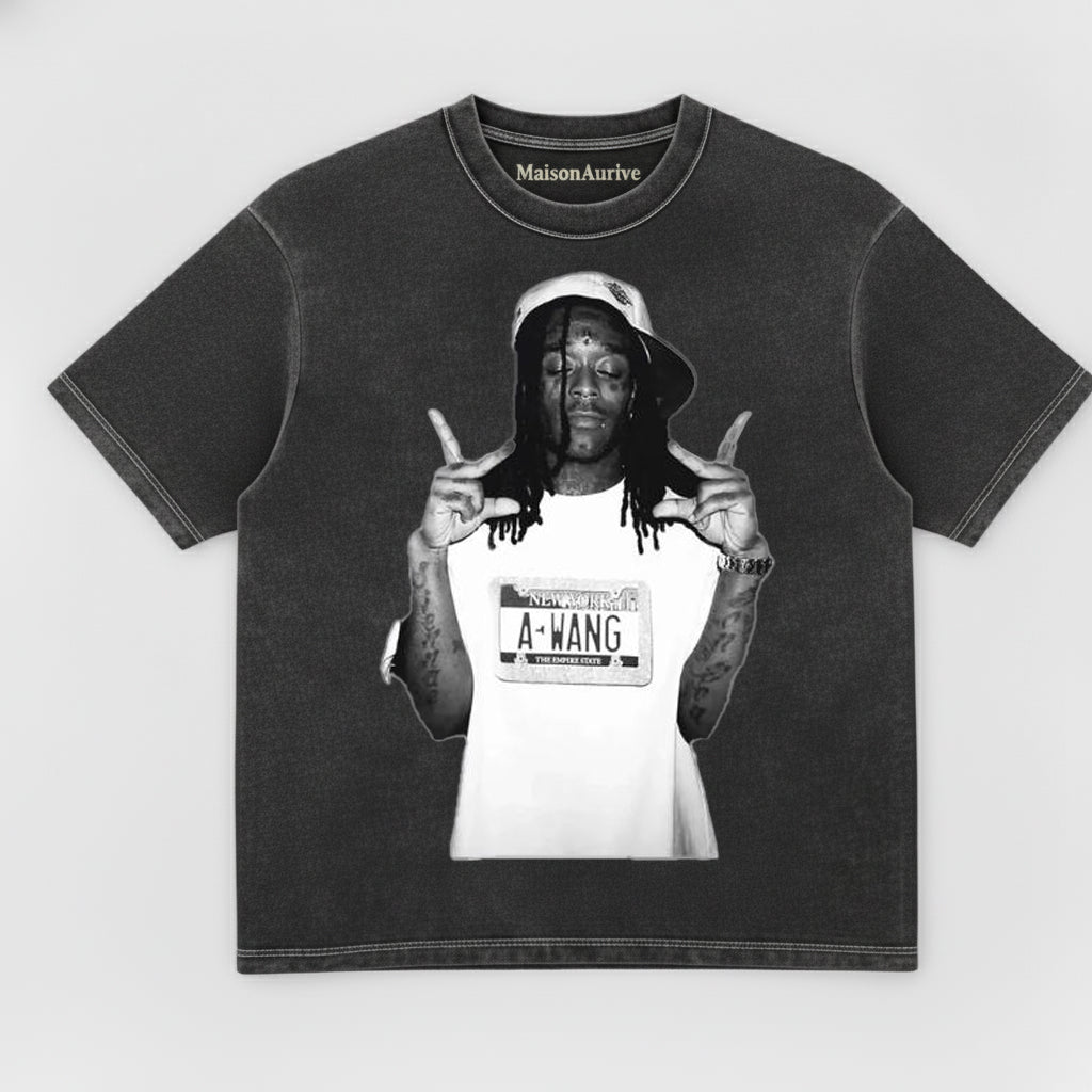 MaisonAurive ウォッシュド ヒップホップ T シャツ - ブラック |ホワイト |リル・ウェイン A-WANG グラフィック