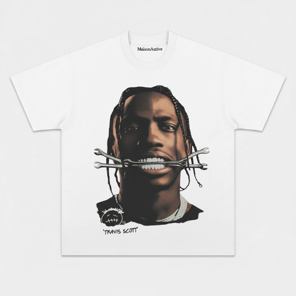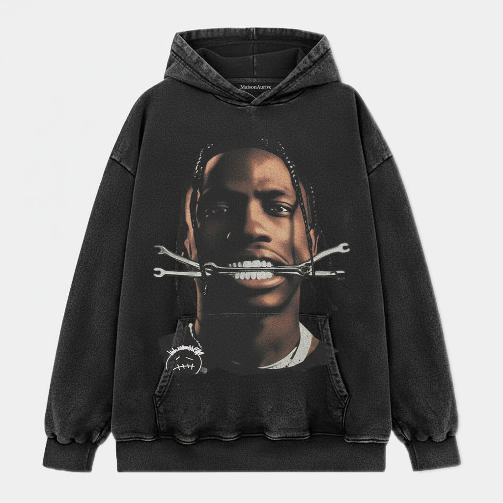 MaisonAurive ウォッシュド ヒップホップ T シャツ - ブラック |ホワイト |トラビス・スコット・レンチのグラフィック
