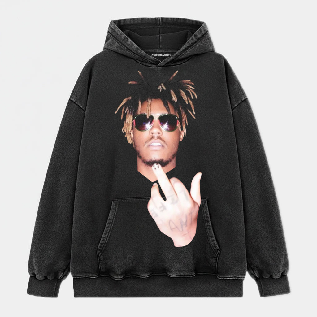 MaisonAurive ウォッシュドヒップホップTシャツ - サングラス & ジェスチャーポートレート ウォーターウォッシュグレー