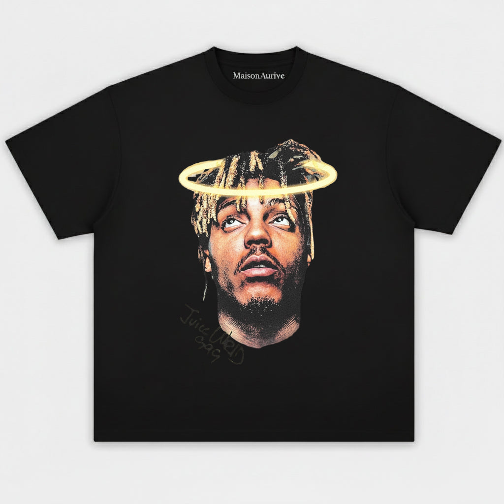 MaisonAurive ウォッシュド ヒップホップ T シャツ – Halo ポートレート ウォーターウォッシュド グレー