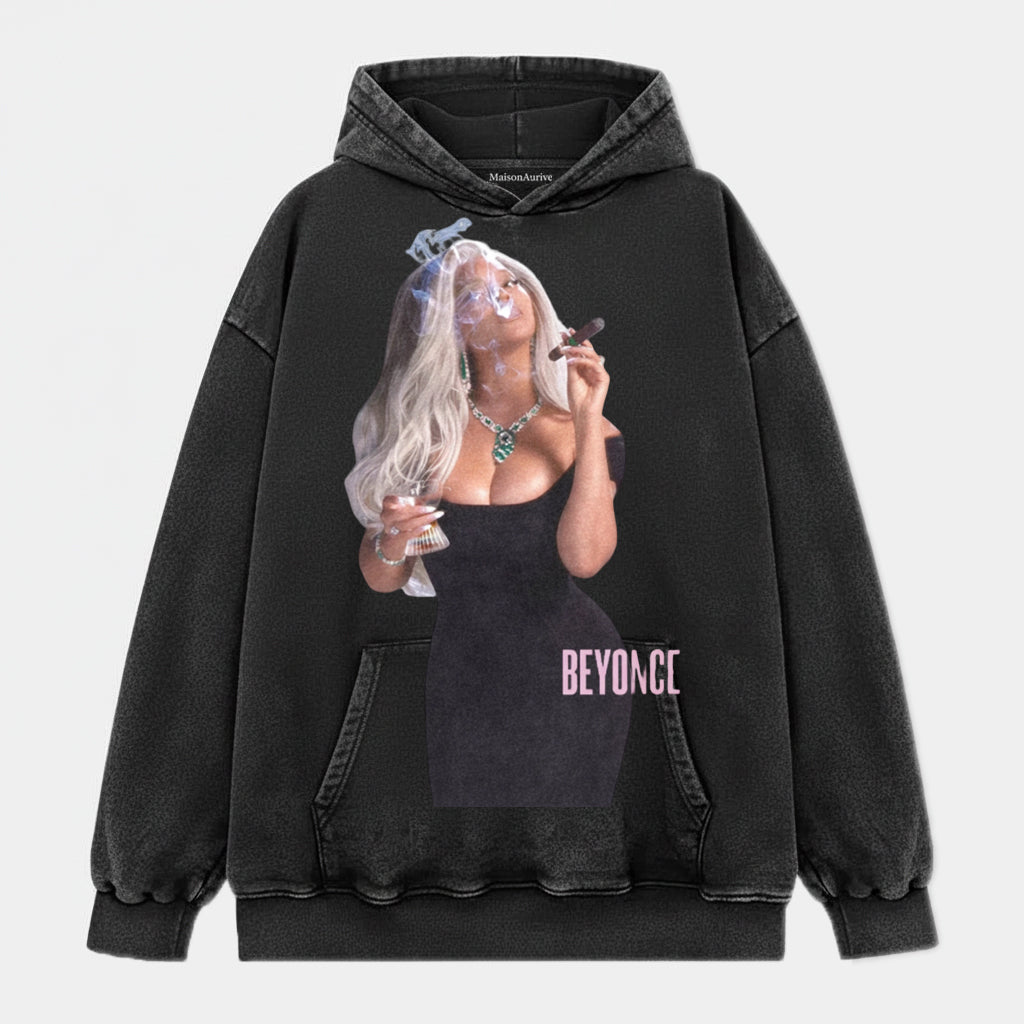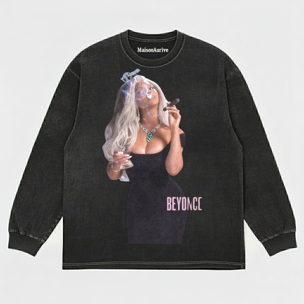 MaisonAurive ウォッシュド ヒップホップ Tシャツ – ブラック | ビヨンセ「シガー」 & ダイヤモンドのグラフィック