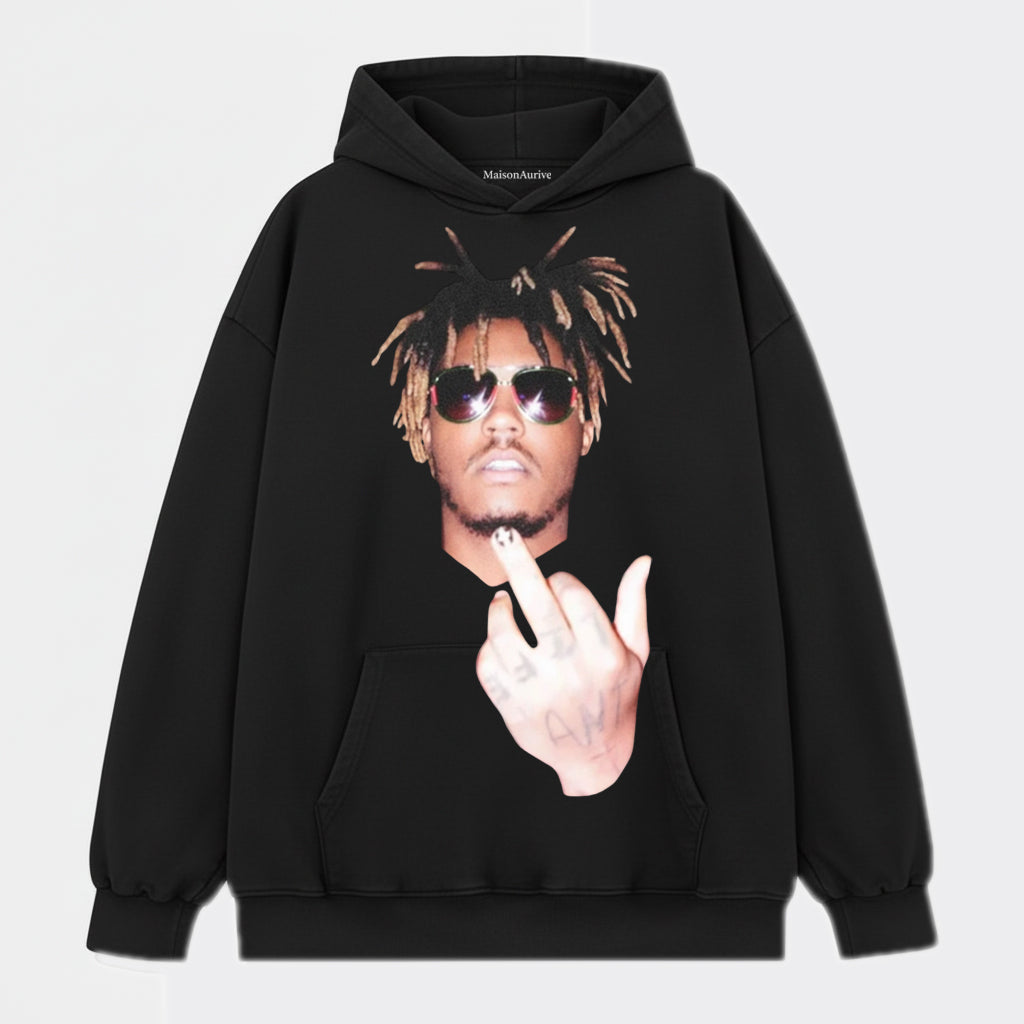 MaisonAurive ウォッシュド ブラック T シャツ – ASAP Rocky の象徴的なジェスチャーのポートレート グラフィック
