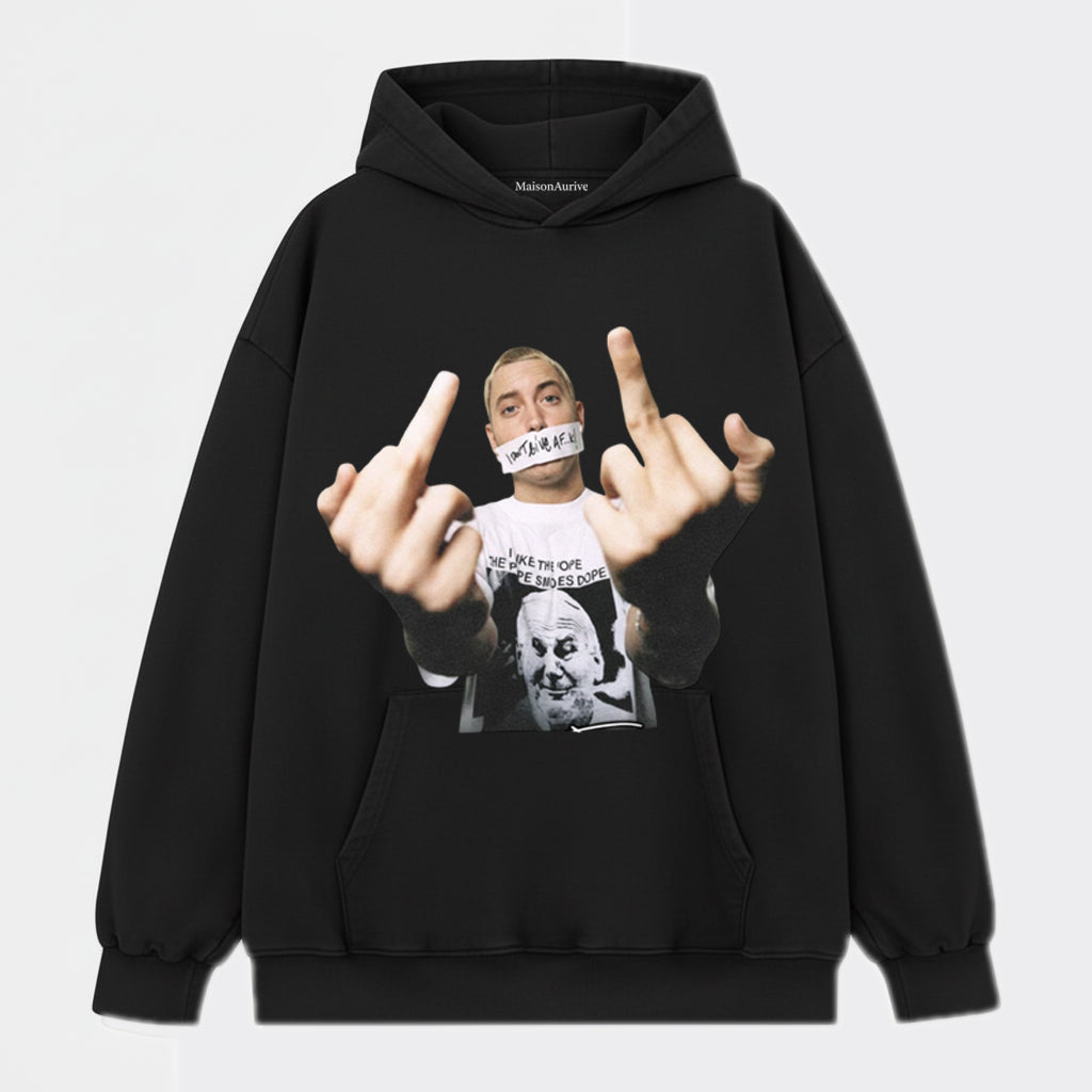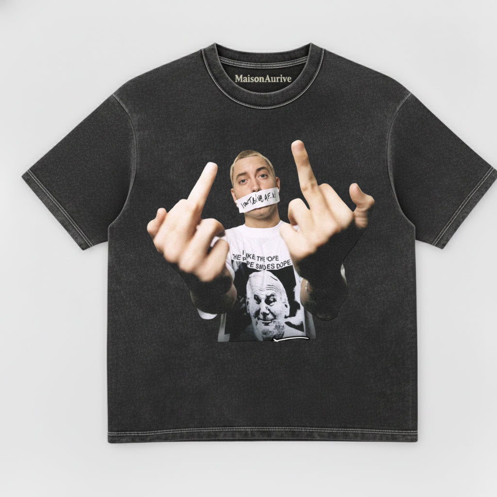 MaisonAurive ブラック ヒップホップ T シャツ – エミネム プリント
