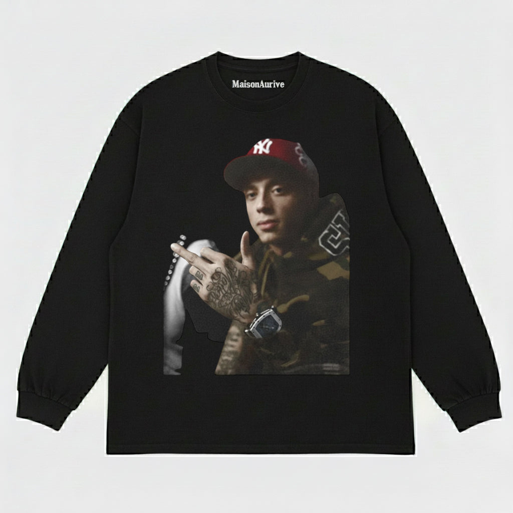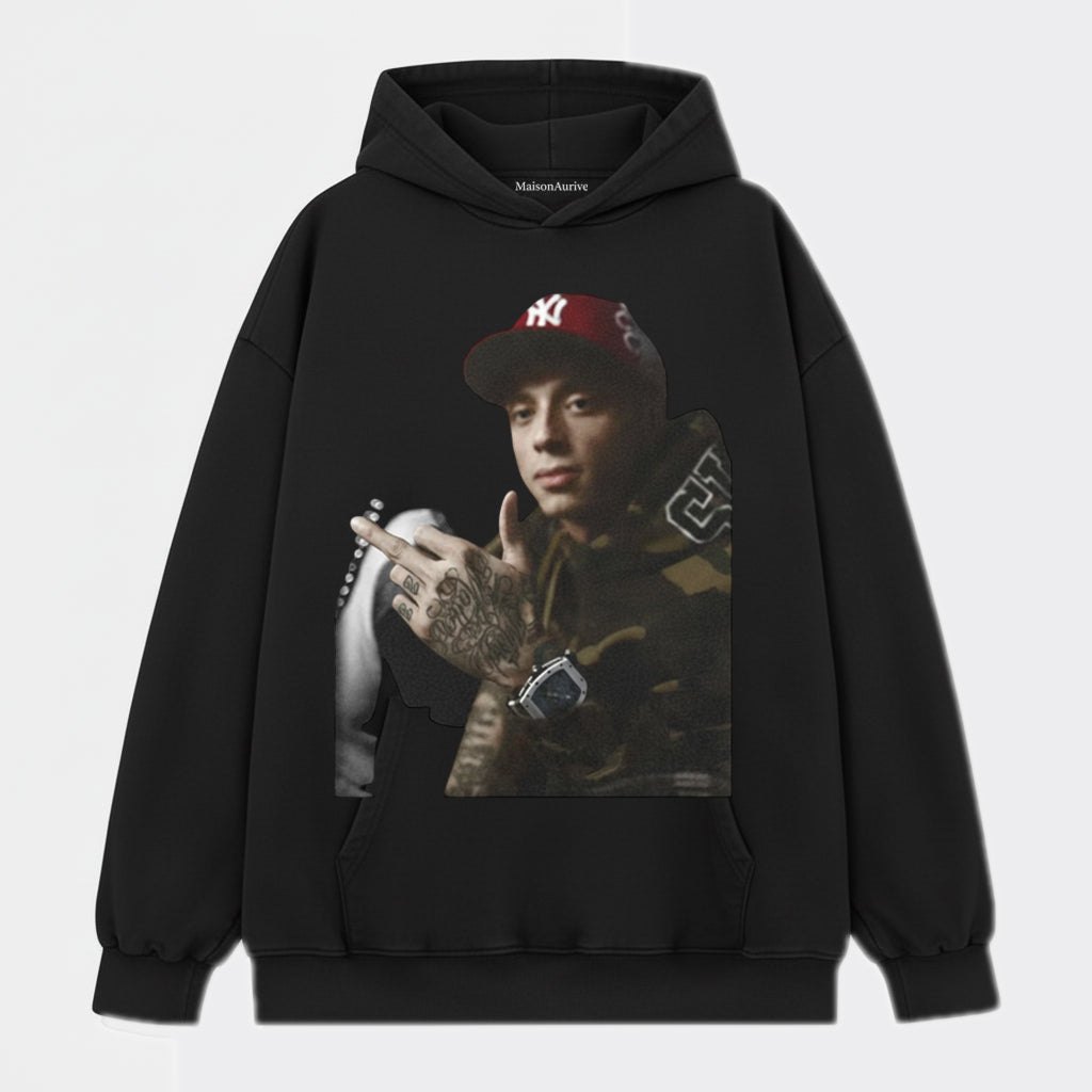 MaisonAurive Washed Hip-Hop Tee – Cap & Tattoo Gesture Portrait Waterwashed Charcoal