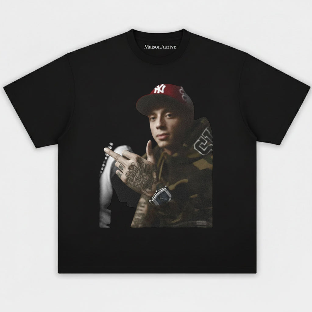 MaisonAurive Washed Hip-Hop Tee – Cap & Tattoo Gesture Portrait Waterwashed Charcoal