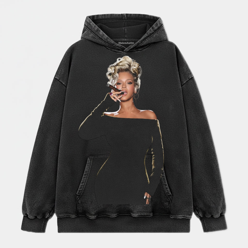 MaisonNeuve Gewassen Edgy Street Tee - Beyoncé Cigar Portrait Water Washed Charcoal