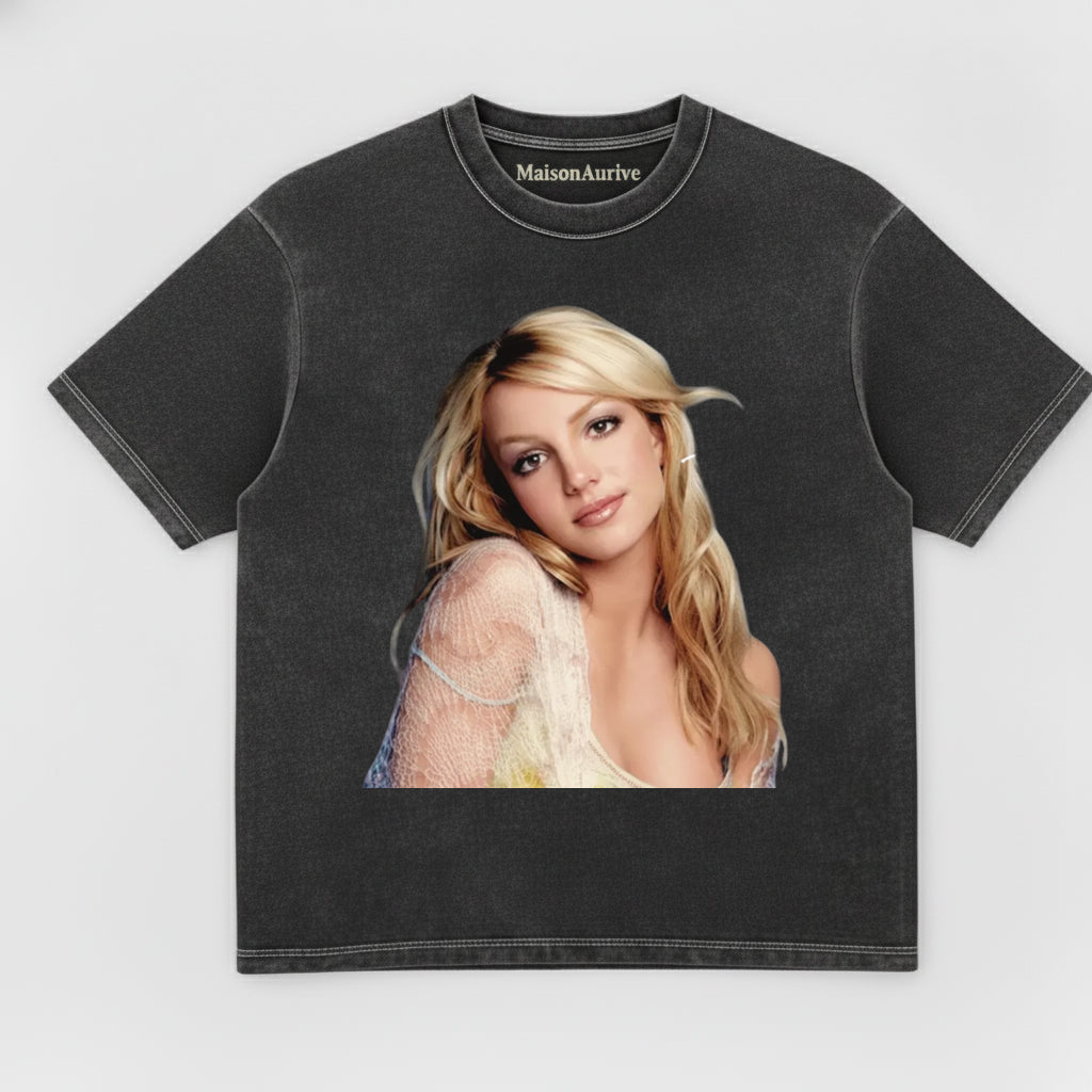 MaisonAurive 水洗前衛街頭 T 卹 – 歌手肖像水洗木炭色